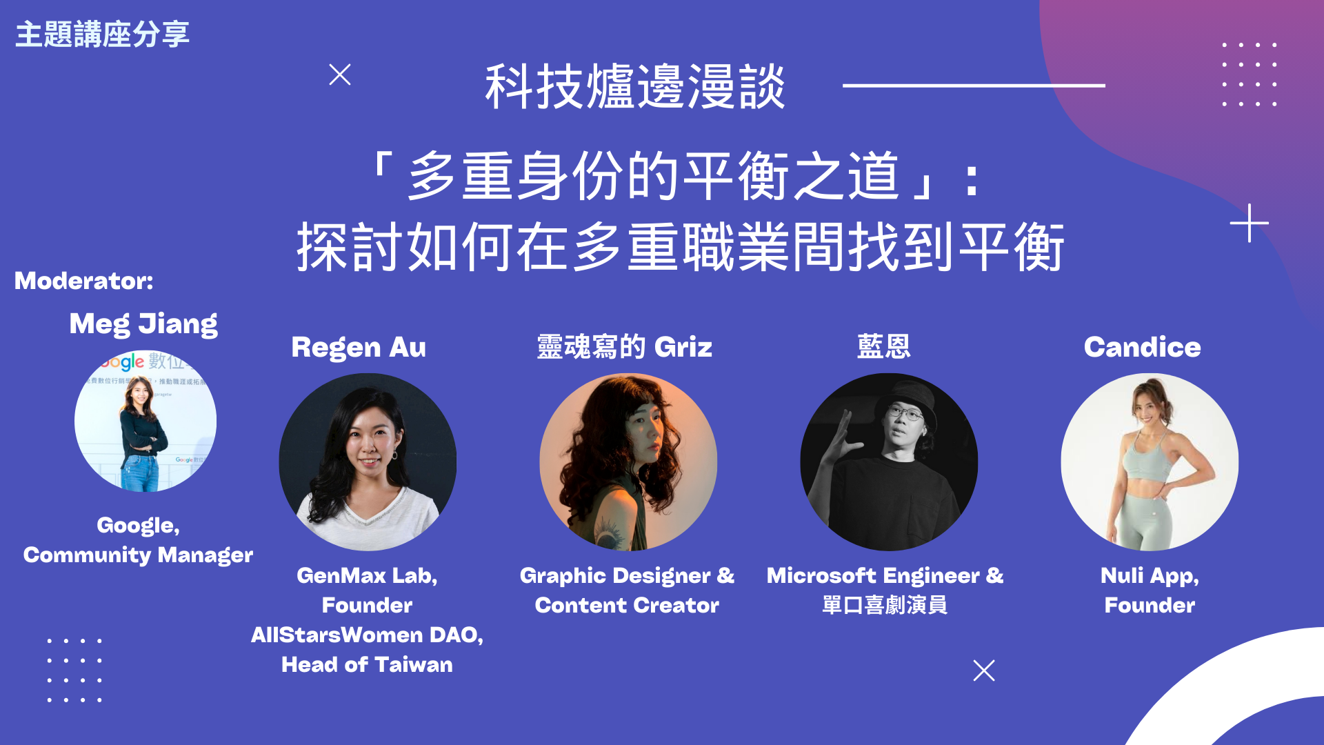 在「科技爐邊漫談」中,我們將探討如何在多重身份中找到平衡,並分享實用的技巧和策略。接著,我們將深入討論「新時代女力」,探索女性在科技、人工智能和Web3等領域的角色與機遇。