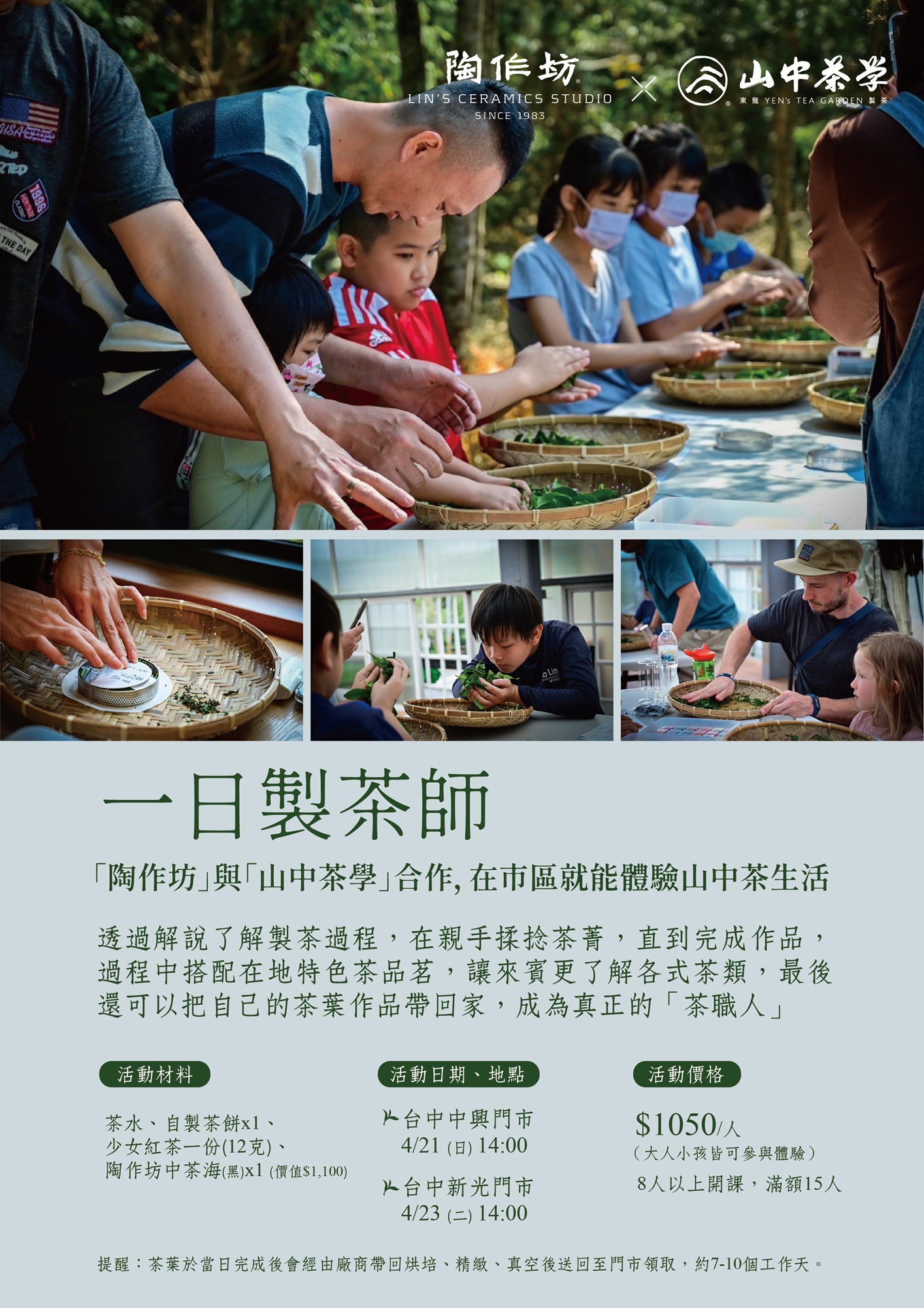 過解說了解製茶過程,在親手揉捻茶菁,直到完成作品,過程中搭配在地特色茶品茗,讓來賓更了解各式茶類,最後還可以把自己的茶葉作品帶回家,成為真正的「茶職人」。