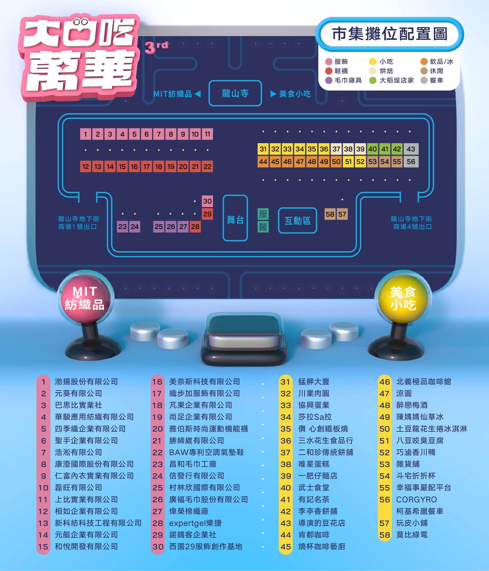 第三屆【大口吃萬華】重磅回歸!延續「親子」主題,透過親子嘉年華創造家庭同樂的場所,再度串聯在地店家與臺灣MIT品牌進駐市集,結合舞台表演、有獎徵答、趣味互動設施、滿額抽好禮等豐富活動,一站式滿足食衣育樂,歡迎民眾一同走進萬華街區!
