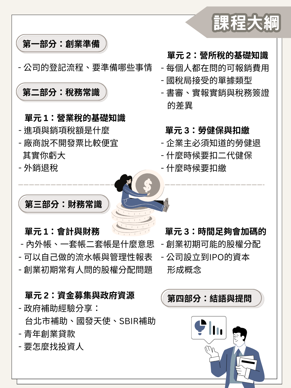 - 課程結束後可加入新創基地Line群組,獲得第一手創業資訊持續學習