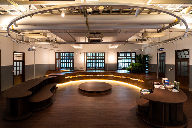 「欣講堂文創基地」的舊香料實驗室座落於松菸2樓西向製菸工廠,為展現菸廠創新與復古交融的文創能量,室內以「擁抱」為概念,並結合講座、展覽或聚會等複合式功能,展現如雙手環抱大眾的意象,希望讓未來參與活動的民眾有舒適輕鬆的空間。