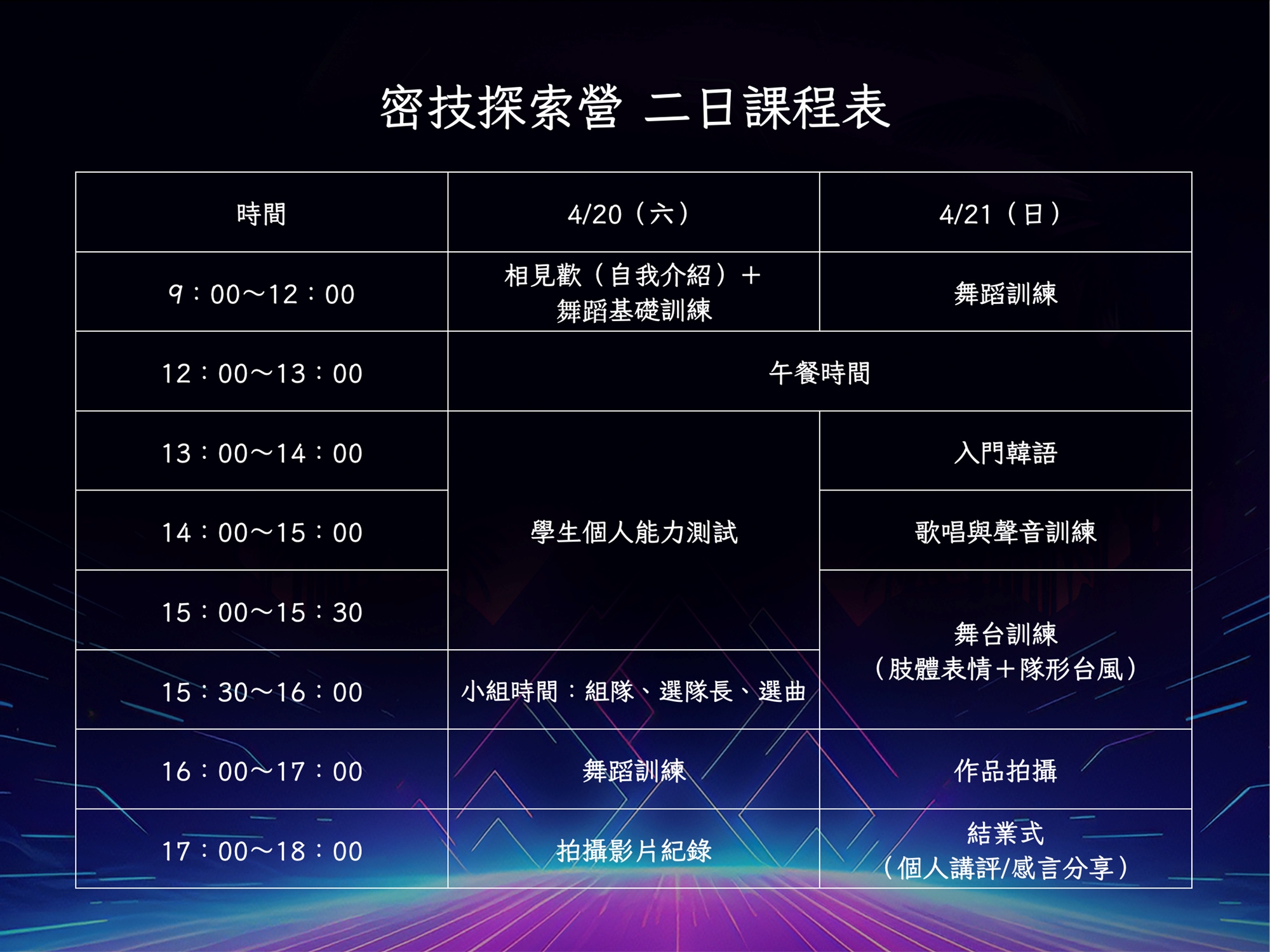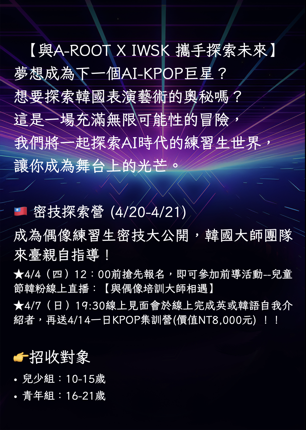 韓國AI-KPOP練習生培訓三部曲~密技探索營 (4/20-4/21)