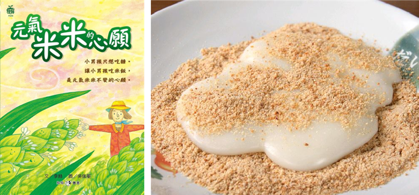 【元氣米米的心願】是講解米食文化的繪本,藉由圖文,讓孩子們了解到農作物必須花費許多時間和心血才能產出,而更珍惜食物,透過老師講解繪本故事後,一起來做客家麻糬【粢粑】,用天然的食用色素(薑黃、蝶豆花等),讓粢粑變成不同的色彩,好吃又好玩。