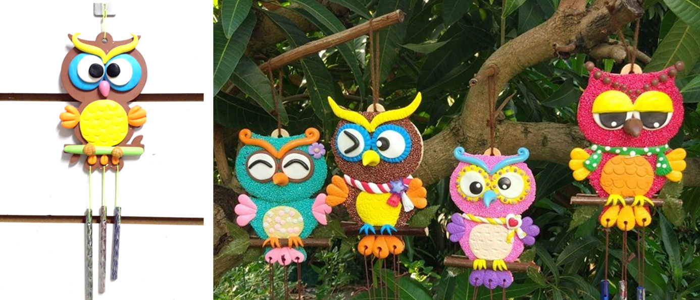 貓頭鷹象徵著守護的意涵,聆聽有關貓頭鷹的繪本故事,並在老師的教導下,以紙黏土捏出貓頭鷹的圖樣,製作可愛的貓頭鷹守護風鈴,帶著小朋友製作自己的專屬守護神。
