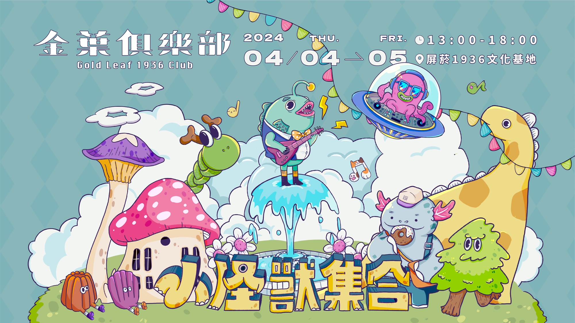 屏菸1936文化基地即將變身超大遊樂園,遊樂園內有「豆子劇團」的互動故事劇場、親子天團「謝欣芷x愛唱歌 The Happy Singing」動感唱跳體驗、「小丑熊熊」帶來充滿歡笑驚奇的互動秀,活動因應龍年推出限定造型氣球,讓小怪獸們親手DIY,度過最歡樂的連假時光!