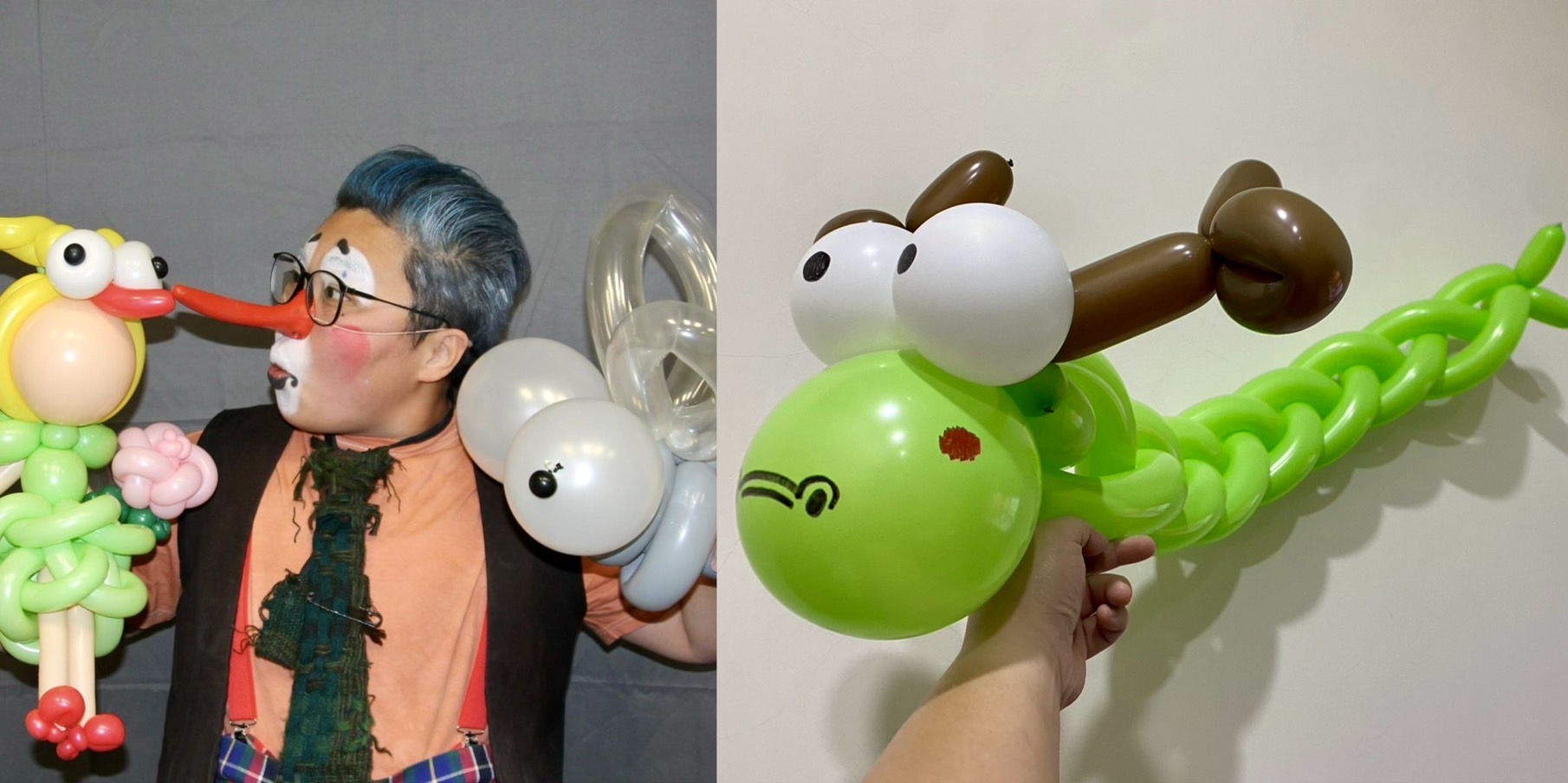 邀請曾獲世界小丑金牌冠軍,擅長默劇與氣球的小丑熊熊,為了符合龍年特地設計Q版龍氣球,邀請小怪獸們動動手,一起DIY摺出可愛造型氣球,度過歡樂連假時光 ♡