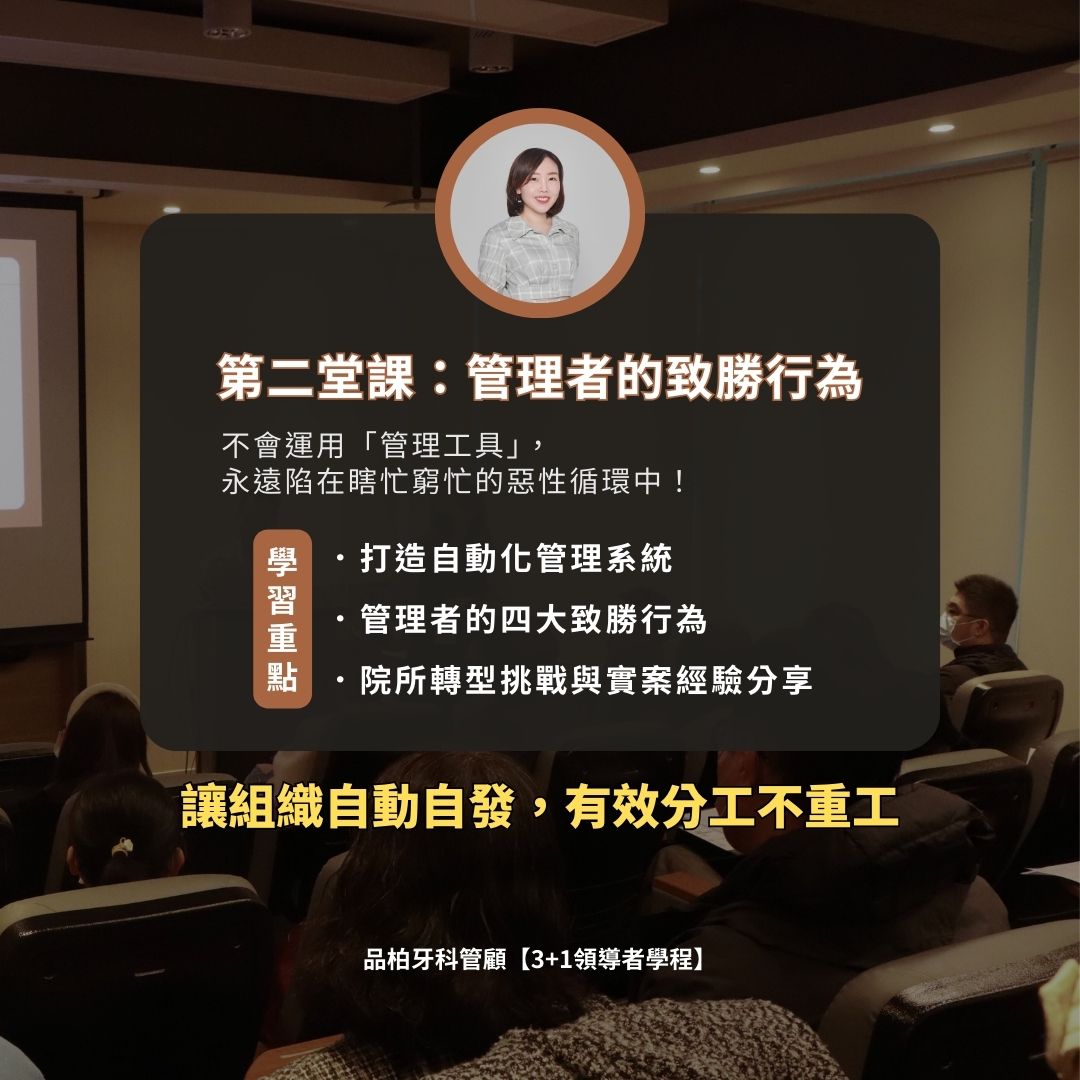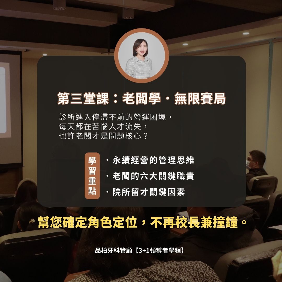 現今,牙醫診所競爭非常激烈,許多院長經營診所時面對許多痛點,如人才招募問題、醫療品質控制、財務管理等,而品柏牙科管顧公司的課程正好能協助院長解決這些問題,非常實用,為牙科診所的老闆或院長提供價值。我們相信,這個課程將為牙科診所的老闆或院長帶來實質性的效益,並協助他們更好地達成更遠大的目標。