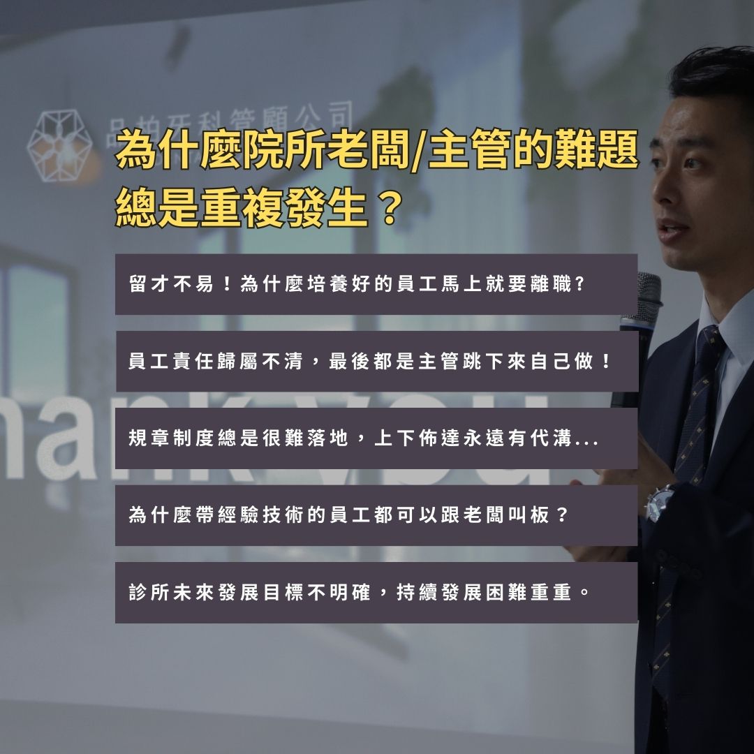 所以,我們推出一系列「領導者學程」,讓您精準掌握診所管理學,提升品牌競爭力,打造永續經營!