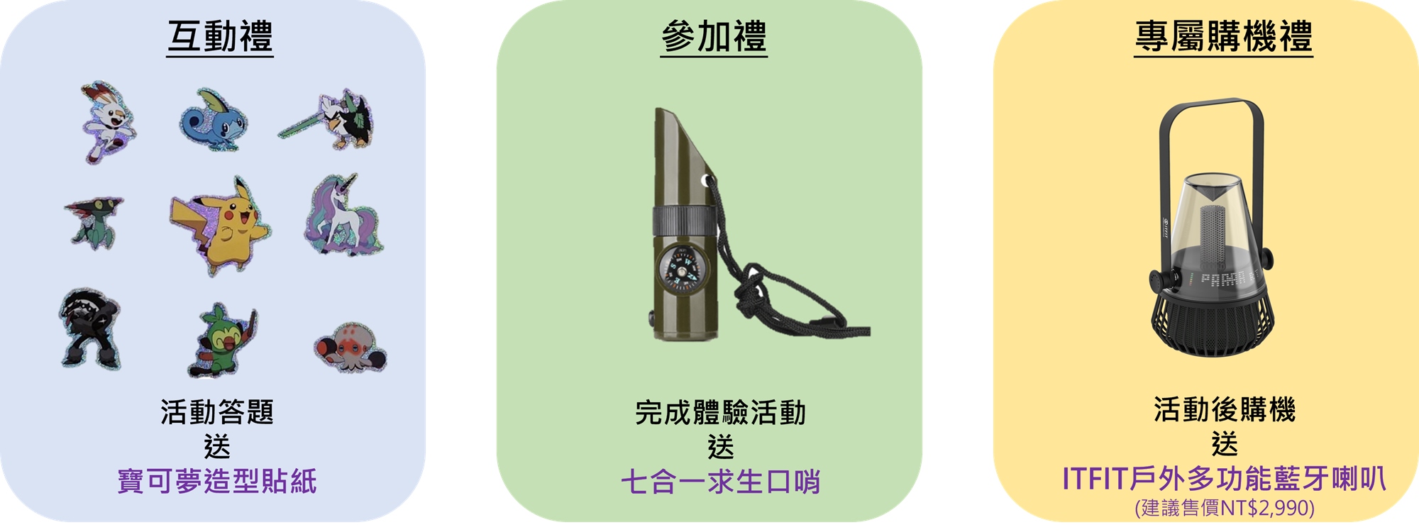 ⓵參加禮、互動禮款式為隨機,恕不挑款;購機禮贈品數量有限,送完為止,恕不挑色。