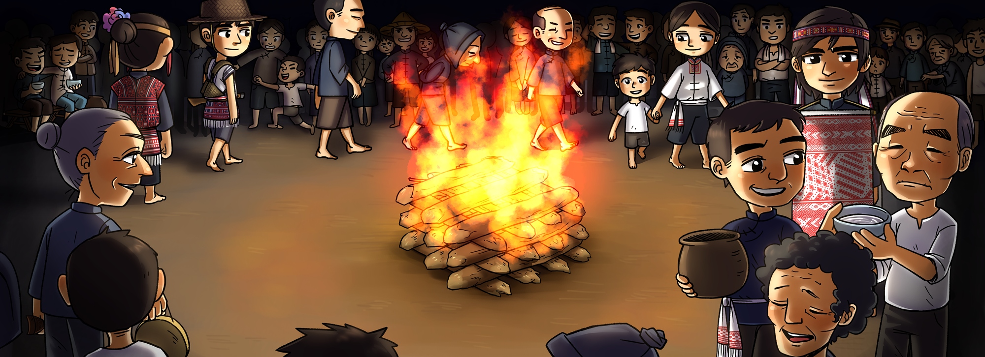 本書是關於噶哈巫族守城部落傳統過年的故事,由噶哈巫族耆老潘德興以噶哈巫語口述,全麥麵(翁勤雯)採集、紀錄,並繪製成繪本。噶哈巫過年於農曆十一月十五日前後,本書逐一描繪過年流程,包括打獵、釀酒、醃肉、抓大魚、抓大豬、作稞、祭祖、敲鑼報喜、走鏢、牽田。本書的出版,在語言方面,留下了寳貴的族語長篇語料。在文史方面,報導了早期的傳統過年,讓讀者可以認識噶哈巫美麗的語言文化,期盼噶哈巫的語言文化能夠生生不息。
