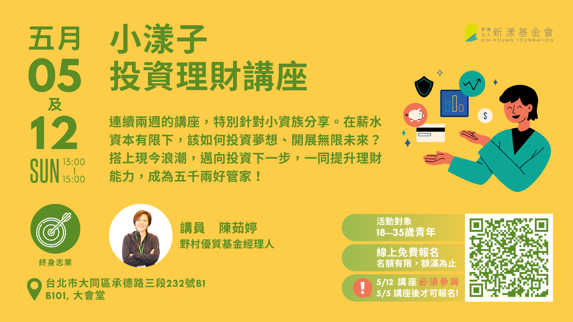 連續兩週講座,循序漸進地帶你認識投資理財:
