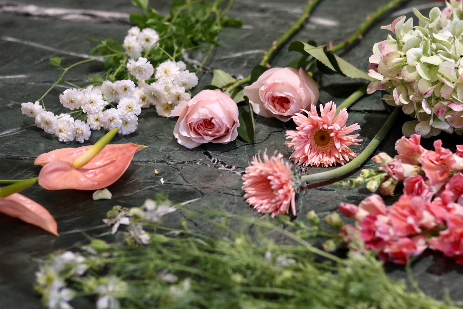 ◆使用花材:以精選的繡球、星辰花、洋甘菊、文心蘭、陸蓮、垂榕花、千日紅、矢車菊、玫瑰打造粉色系作品