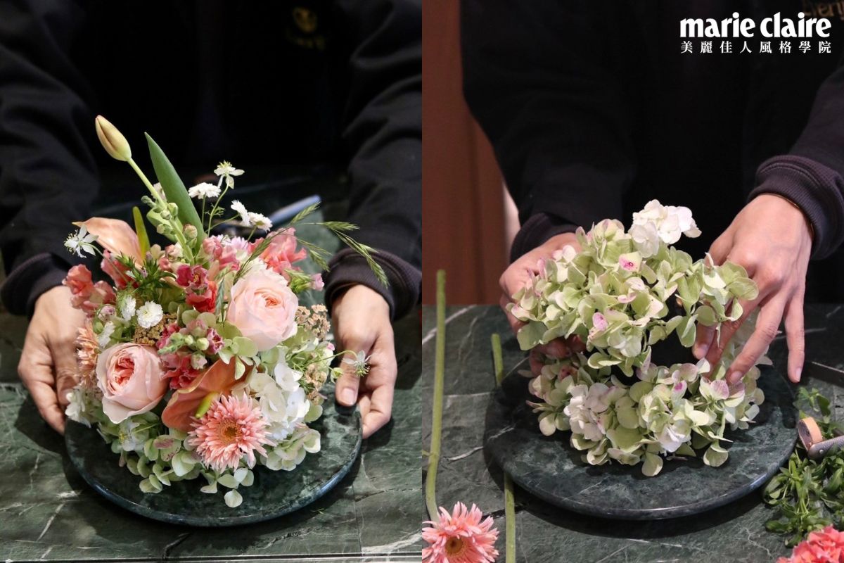 這堂課將以海綿為基底,精選繡球花和澎湃豐富的繽紛花卉,