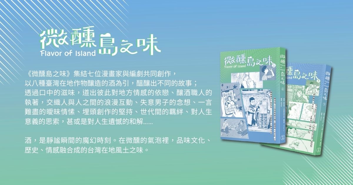《微醺島之味》集結七位漫畫家與編劇共同創作,以八種臺灣在地作物釀造的酒為引,醞釀出不同的故事,何安妘編劇將臨版本書店領著你品味文化、歷史、情感融合成的台灣在地風土之味。
