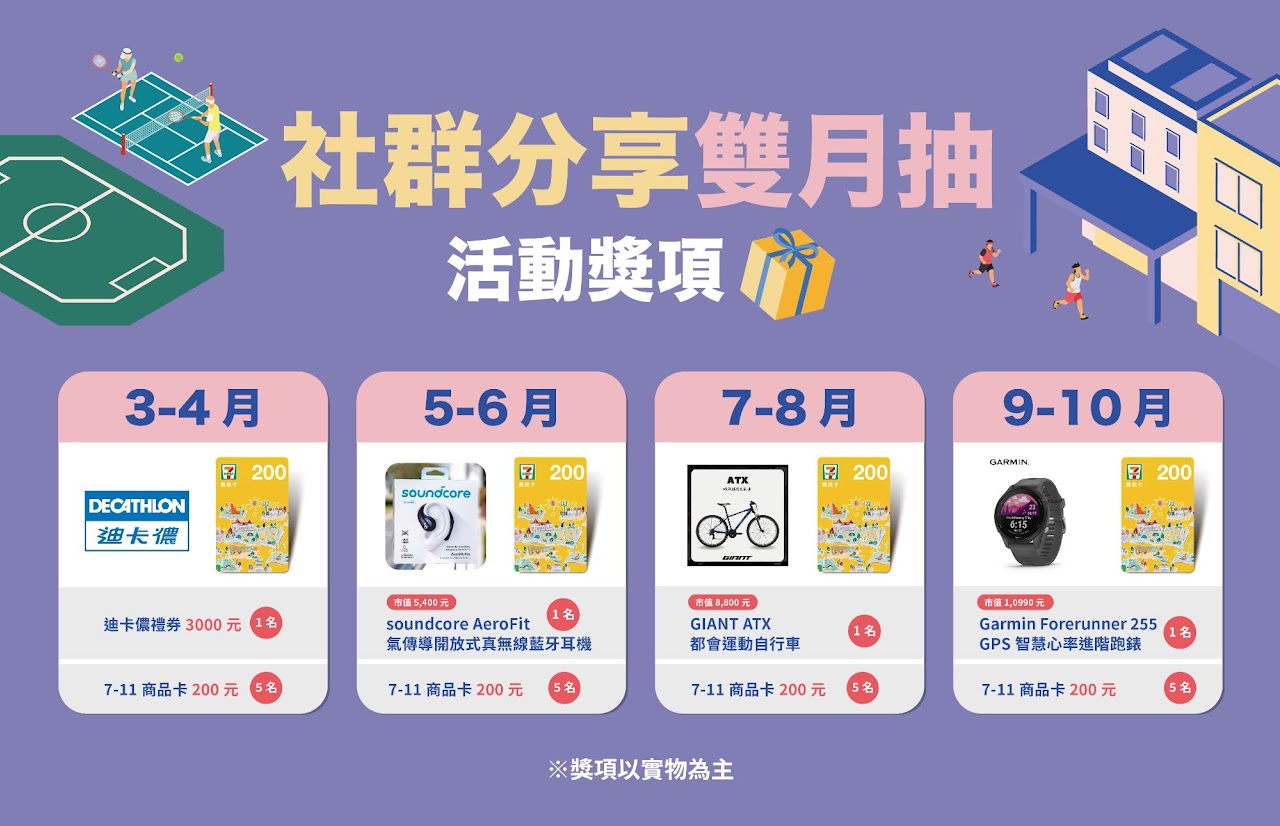 參加任一堂課程,完成社群公開分享就有機會抽中捷安特腳踏車、Garmin跑錶等好禮!分享越多中獎機會越大!