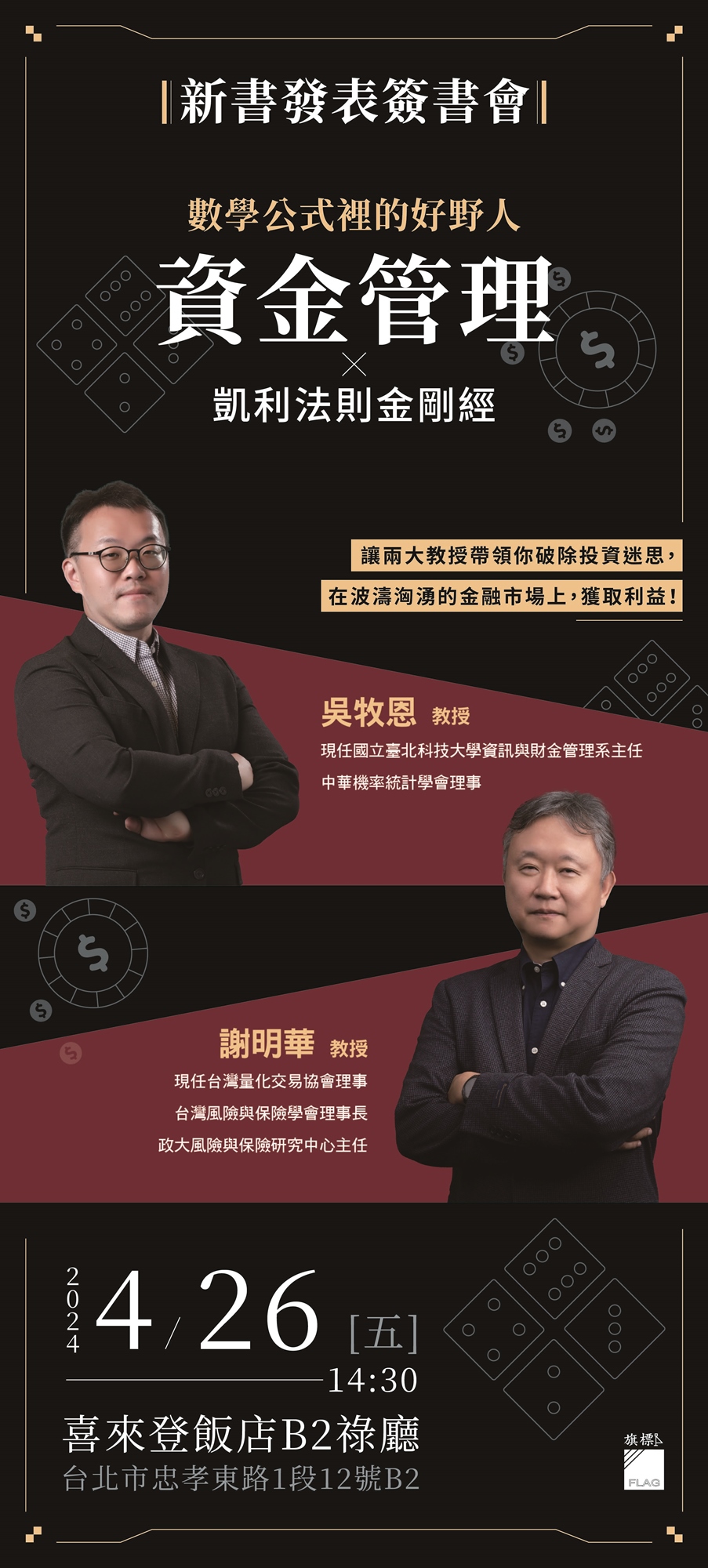 主要研究領域為金融資料分析、資金管理、量化交易。曾發表上百篇學術期刊論文與國際研討會。致力推廣資金管理、交易策略的數學根基,期許打破大眾對於交易聖杯的追求。