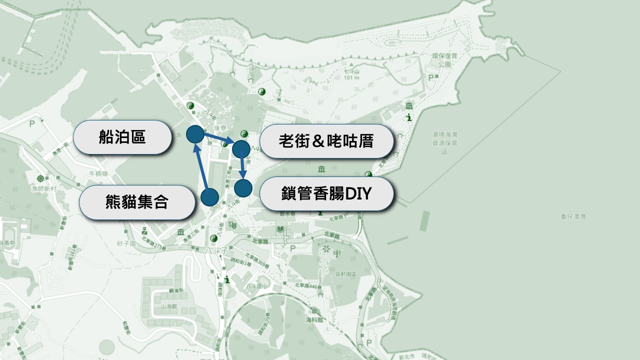 (熊貓)報到集合➜漁港認識棒受網漁船➜鎖管香腸DIY➜烤香腸