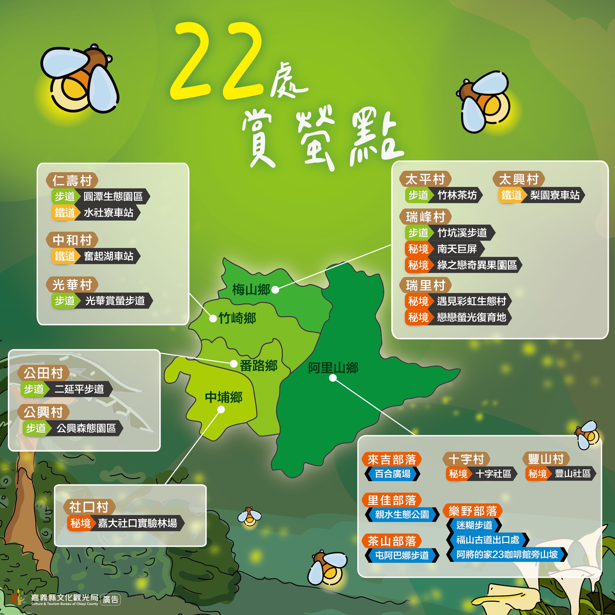 嘉義縣精選4大賞螢主題22處賞螢景點,邀請大家一同認識螢火蟲