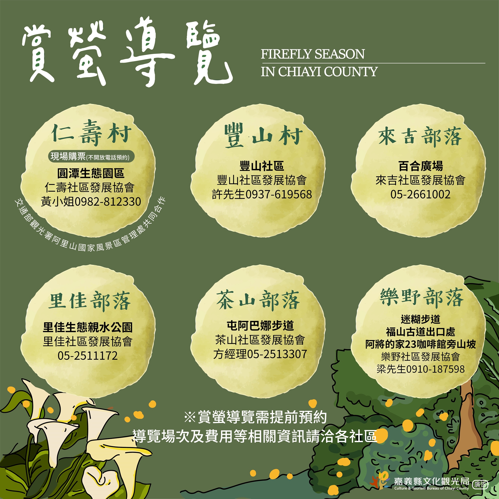 ※賞螢導覽須提前預約,導覽場次及費用等相關資訊請洽各社區
