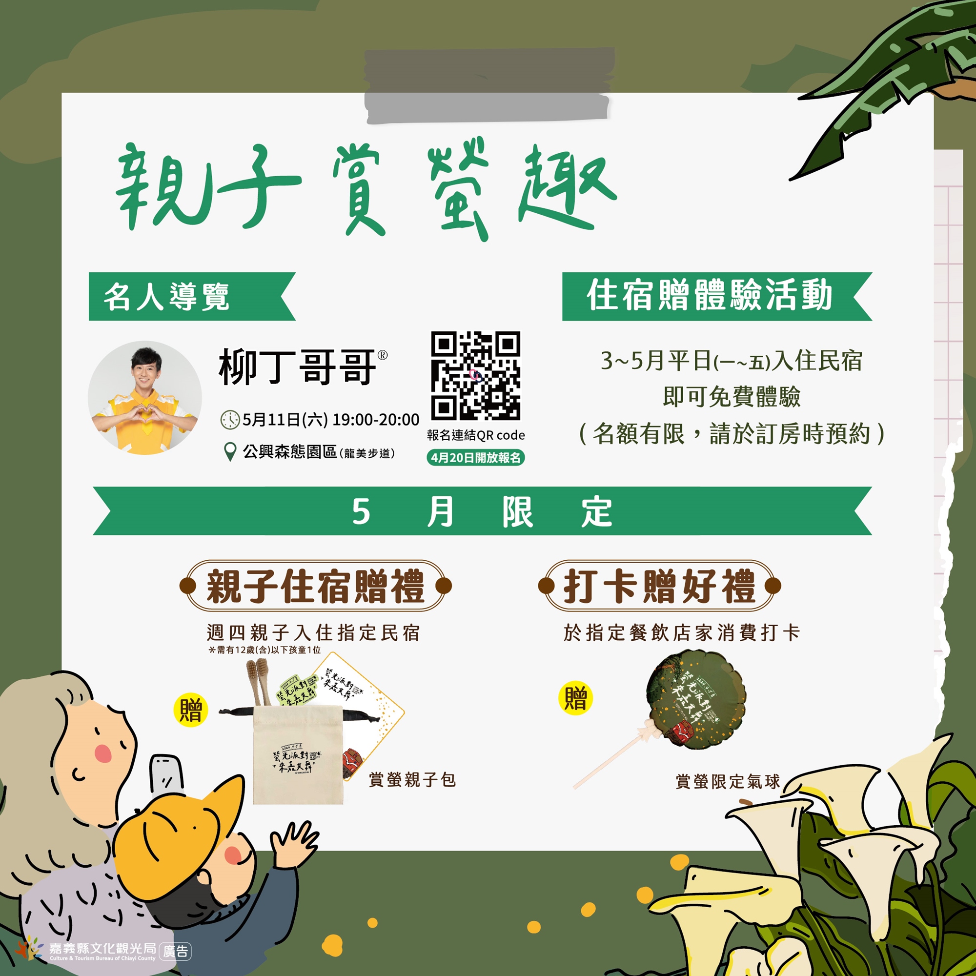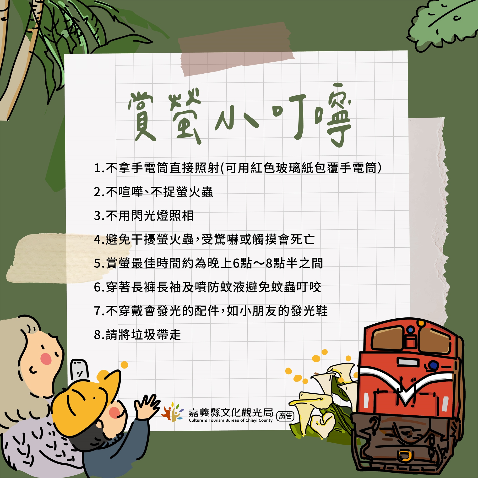 嘉義最獨特鐵道賞螢、在地人推薦秘境賞螢、全齡友善的步道賞螢、富有人文的部落賞螢。