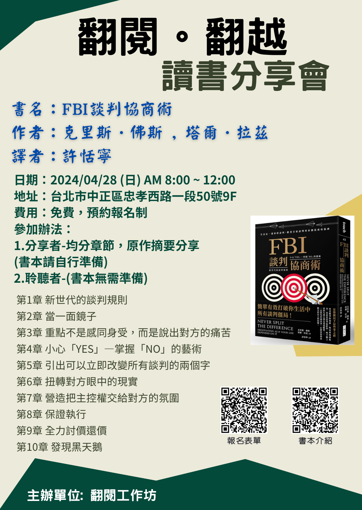 1.參加者(分享者)均分章節,原作摘要分享(書本請自行準備)--->目前各章節已有分享者