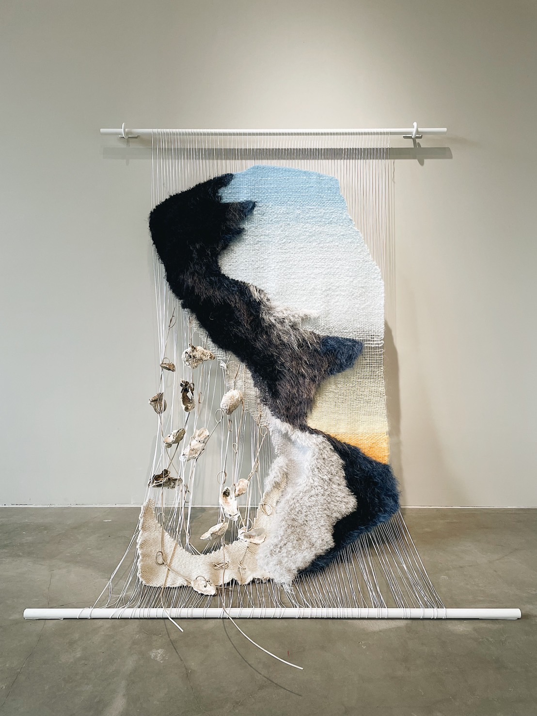 透過淨山與淨灘的活動,陳聖文在山中清風與海邊浪花間以「身體勞動」感知著自己作為一個意識個體的存在。他將撿拾到的廢棄物重新轉化,用刺繡或編織技法,探索人類如何將自然環境視為零成本的資源,無盡地消耗,最終導致環境浩劫。他也觀察到植物承受著人類排放的污染,無法以語言表達情緒與需求,因此他藉著創作,為這些被忽略的生命發聲,揭示肉眼難以看見的真相。