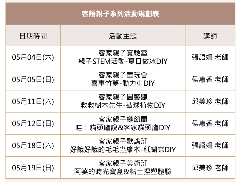 5月份 親子體驗小教室