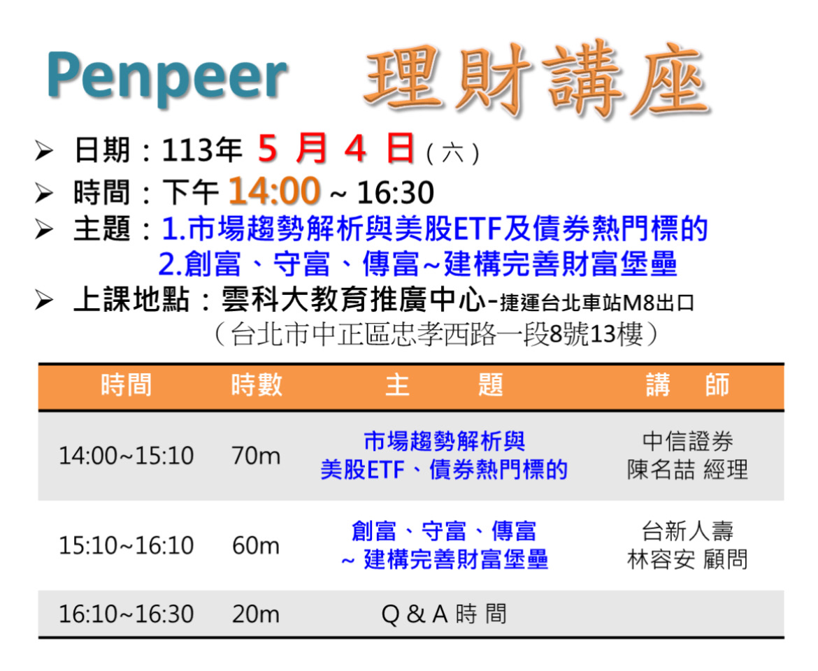 Penpeer理財【美股ETF熱門標的 財富傳承】講座