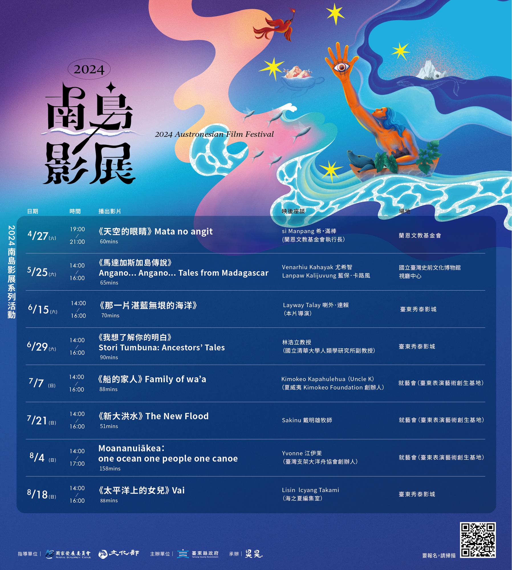 「2024南島影展」4/27至8/18共計八場放映與座談,系列活動「走讀x講座x書展」,敬邀共享。