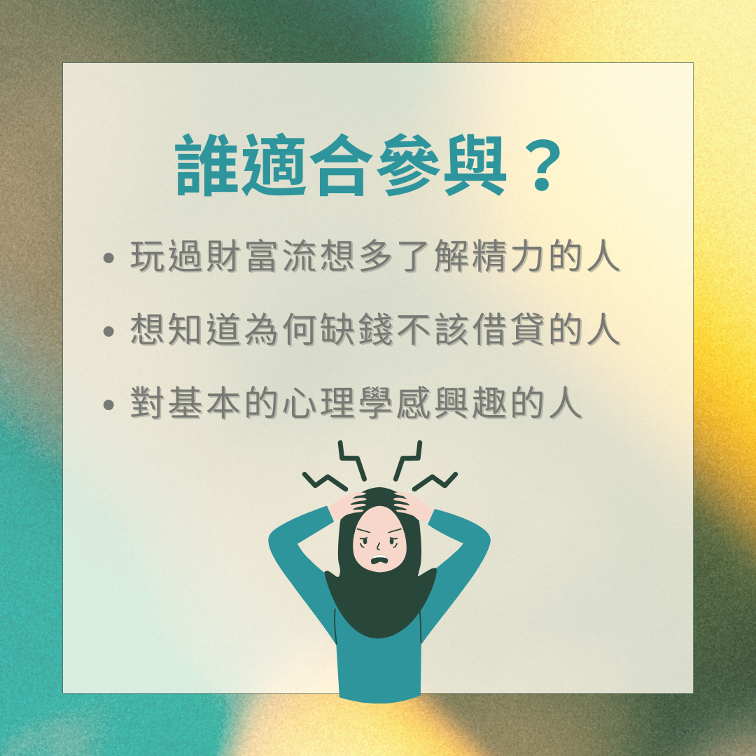 誰適合參與這次的活動呢?如果您曾經玩過桌遊「財富流」,