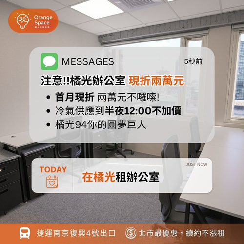 簽約首月現折2萬租金 即可入租北市精華蛋黃區 辦公室 !!!!!