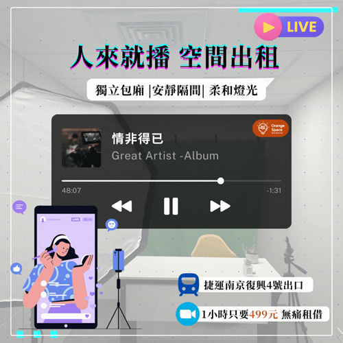 ⭐全台獨家!高品質靜悄悄 直播錄音空間 提供年租戶免費使用!