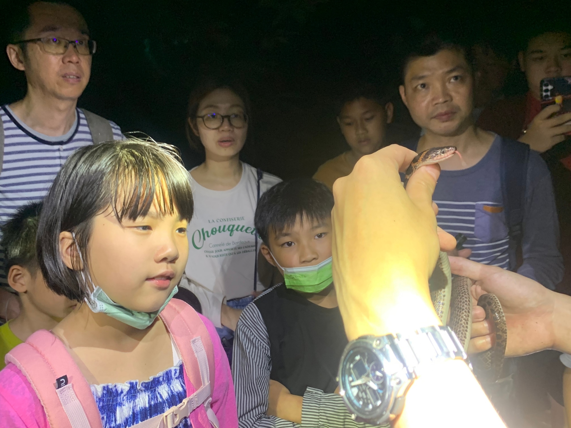 蝙蝠、蛇(紅斑蛇、青蛇、赤尾青竹絲、龜殼花、白梅花蛇、白腹游蛇...)、螢火蟲(4~5月限定)、獨角仙(5~6月限定)、蛙(斯文豪氏赤蛙、拉都希氏赤蛙、中國樹蟾、澤蛙、蟾蜍...)、貓頭鷹(領角鴞、黃嘴角鴞)、溪畔生物如螃蟹、長臂蝦、蜘蛛、昆蟲、節肢動物...