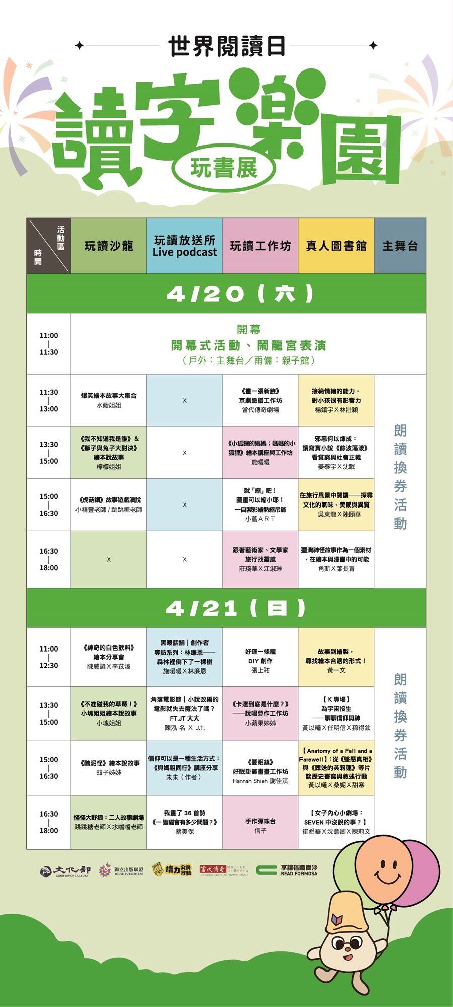 世界閱讀日,你就是最重要的閱讀大使!活動期間,板橋放送所戶外舞台將成為現場朗讀專區,不論是大人小孩,都歡迎可以自己帶書,或直接抽取現場準備的書籍,站在麥克風前隨意朗讀,透過聲音傳遞閱讀樂趣,換乘「讀字樂園」內的遊樂設施!