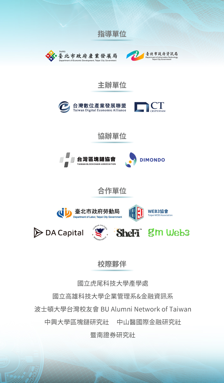 合作單位:台北市政府勞動局、Web3協會、DA Capital、騰旭智慧股份有限公司、SheFi、gm Web3