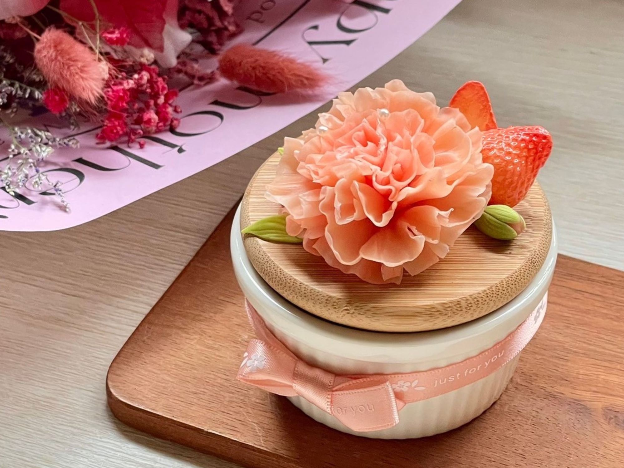 藝心軒手創藝術 2024母親節手作課程–《康乃馨魔法蠟燭盅》,