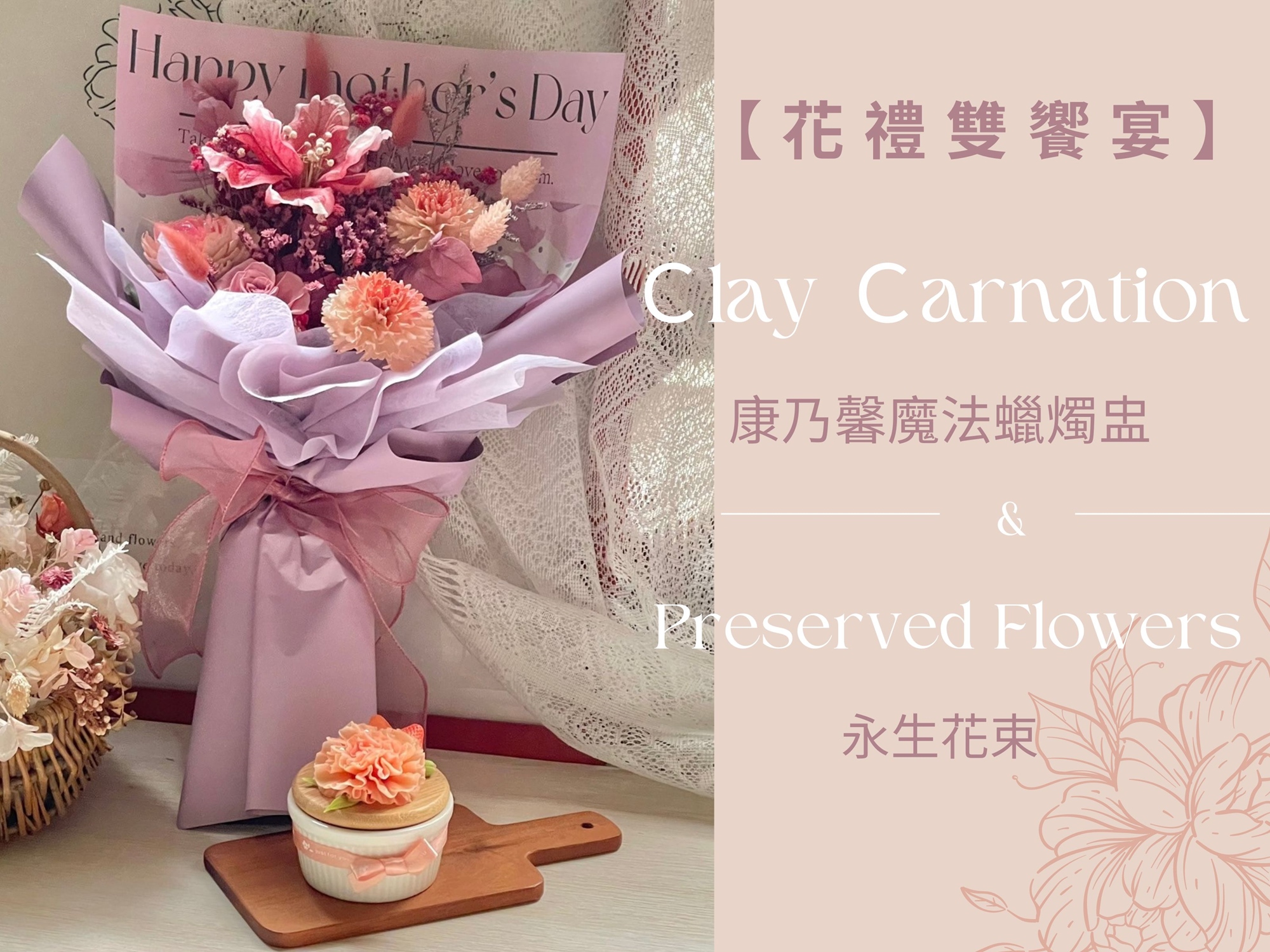 【花禮雙饗宴】母親節禮,亦可訂購成品;預購請聯繫主辦單位官方Line。