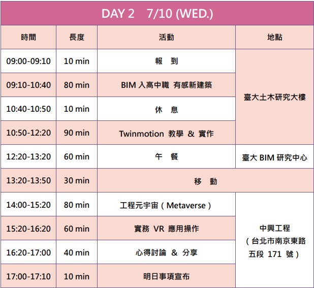 - 本研習營為不過夜研習,因此無提供住宿;可參考建議住宿