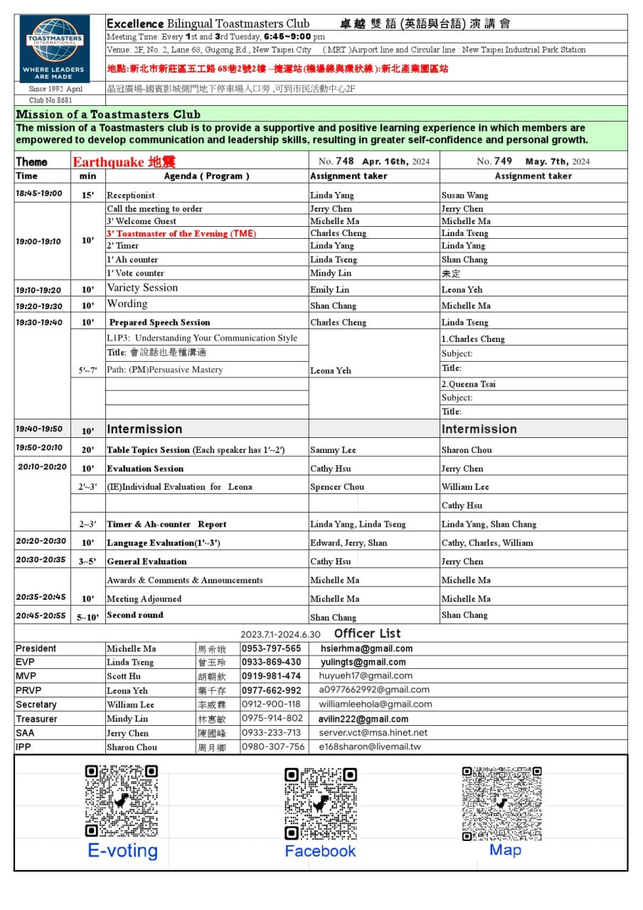 Excellence is a Bilingual club of English and Taiwanese.