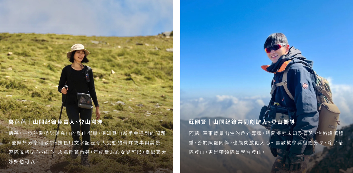 本次將由山岳領域新興團隊-山閱紀錄 官網 / Instagram ,蓓蓓與阿蘇嚮導,帶領大家一起體驗 MYSTERY RANCH 背包魅力和大自然的美麗風景,享受不同地形的美麗同時學習探險技巧,並教授登山實用技能。