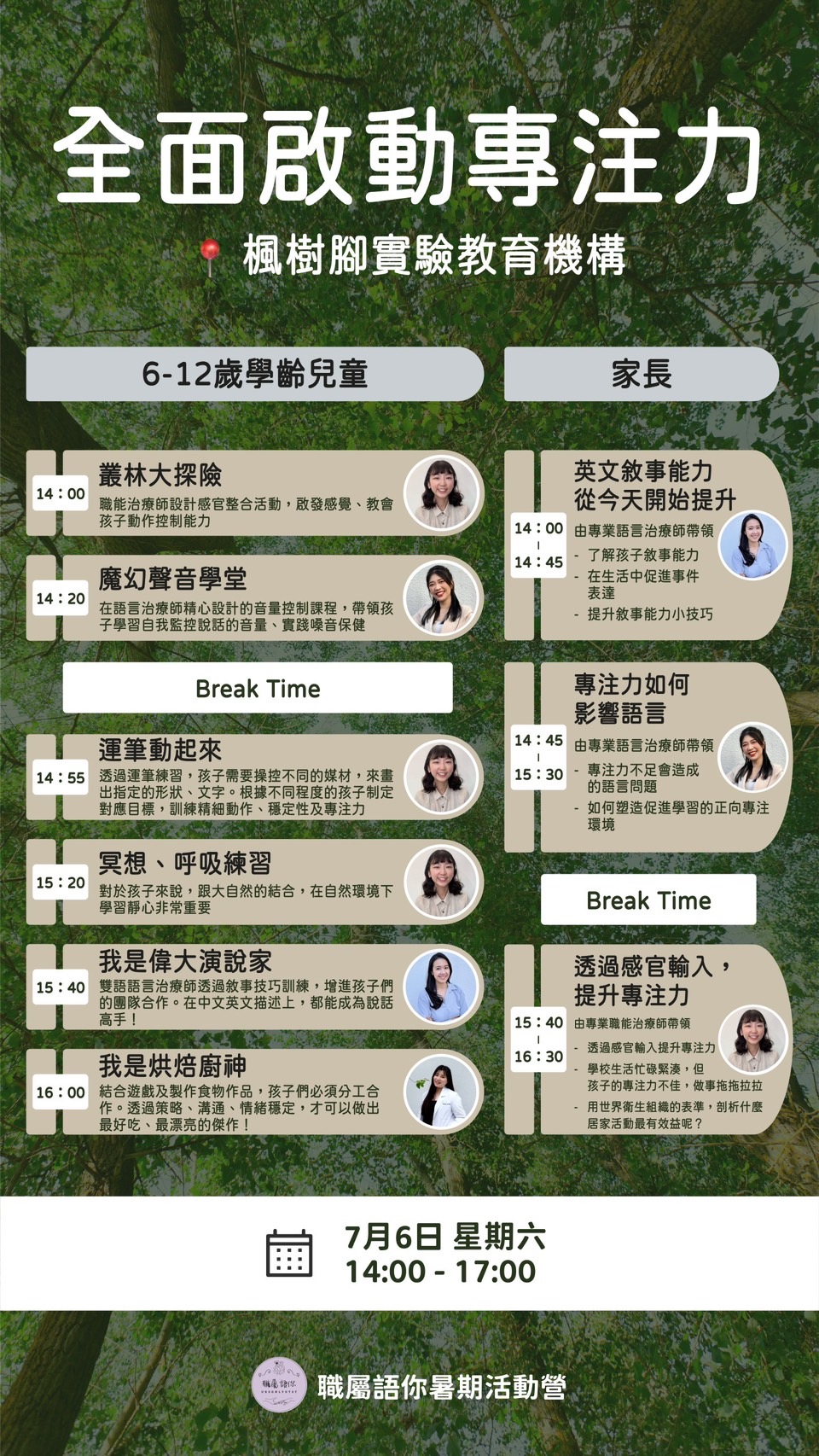 1️⃣ 場次一:7/6週六14:00-17:00-限6-12歲學齡兒童(剩餘4名額)