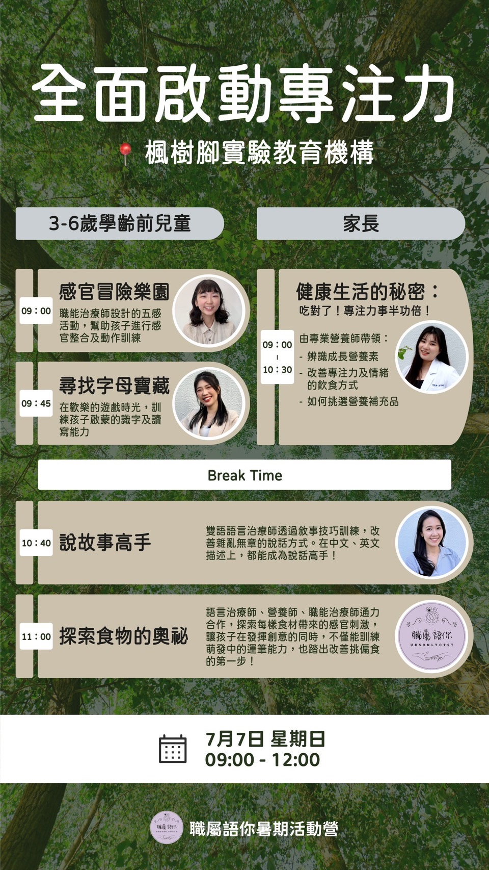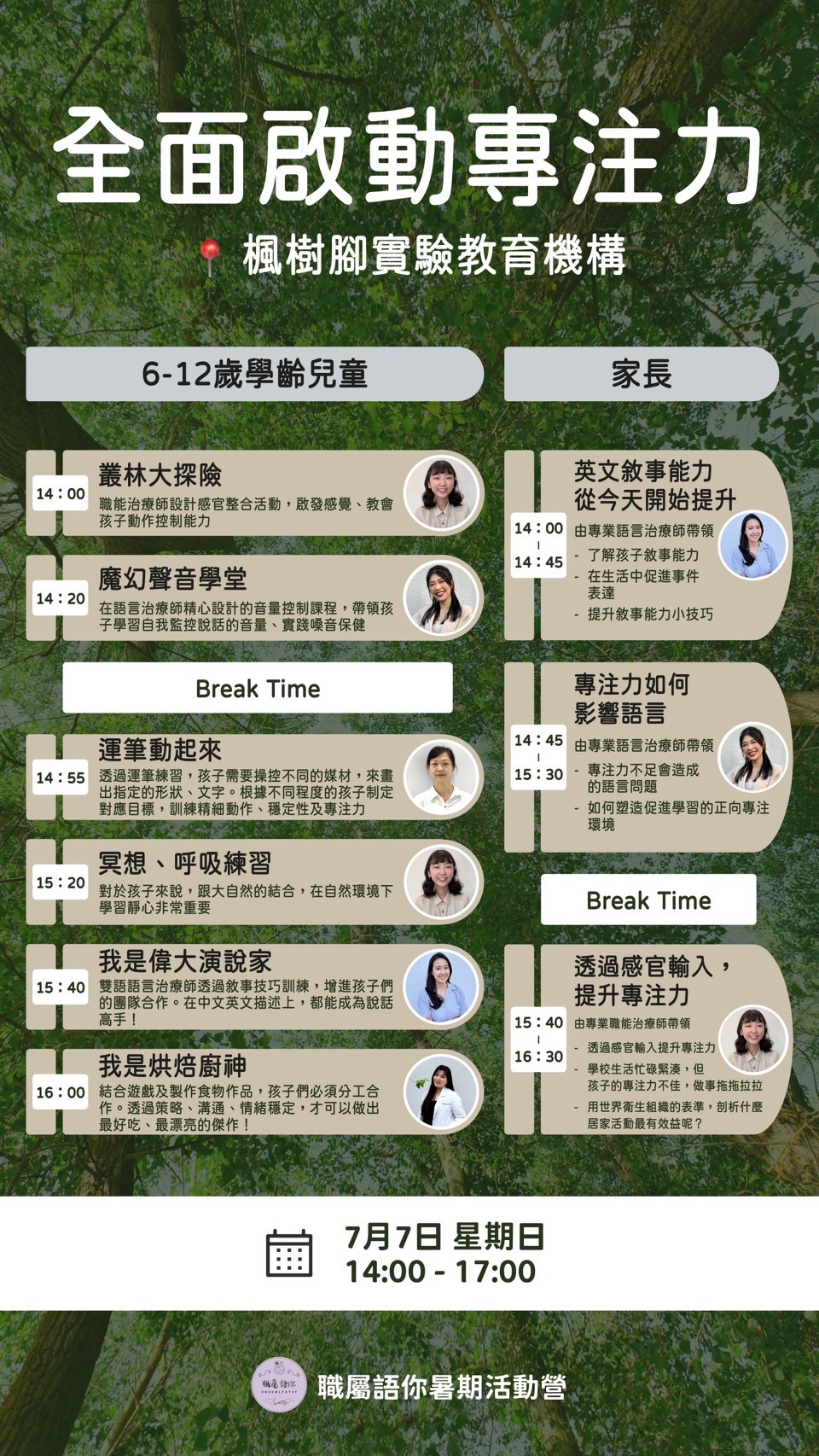 3️⃣ 場次三:7/7週日14:00-17:00-限6-12歲學齡兒童(已完售)
