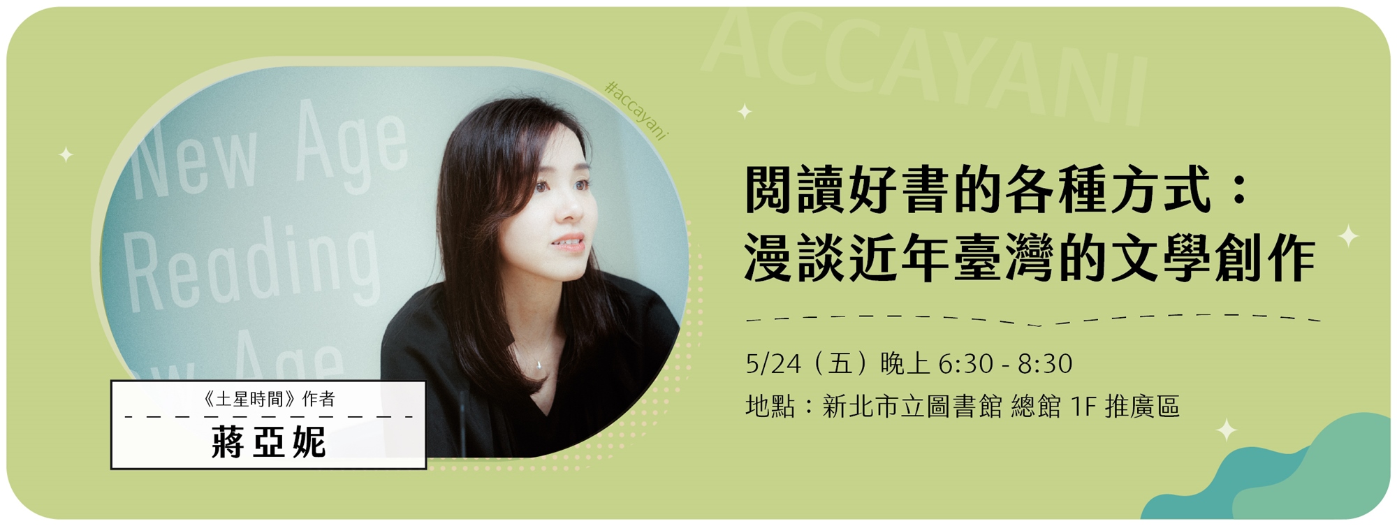 講師:蔣亞妮(著有散文集《土星時間》、主持Podcast「妮說Book,我說可」)