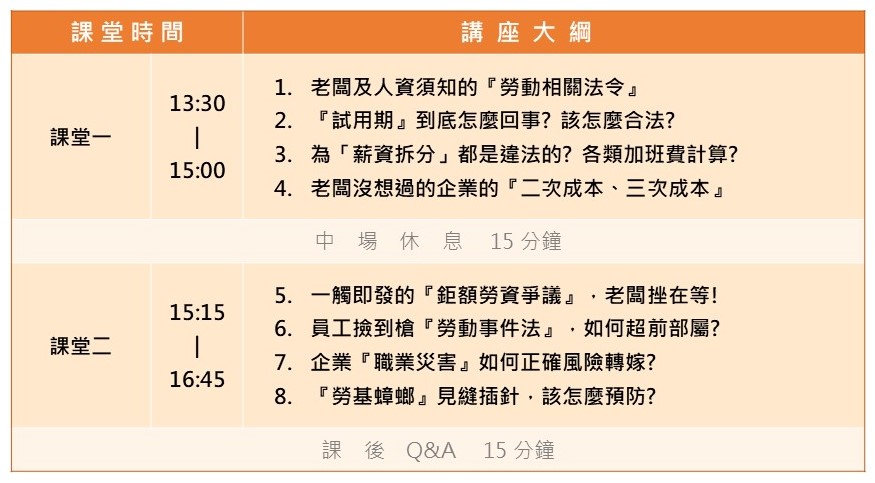 • 經濟部中小企業處聯合輔導基金會-財管顧問師班 勞資課程講師