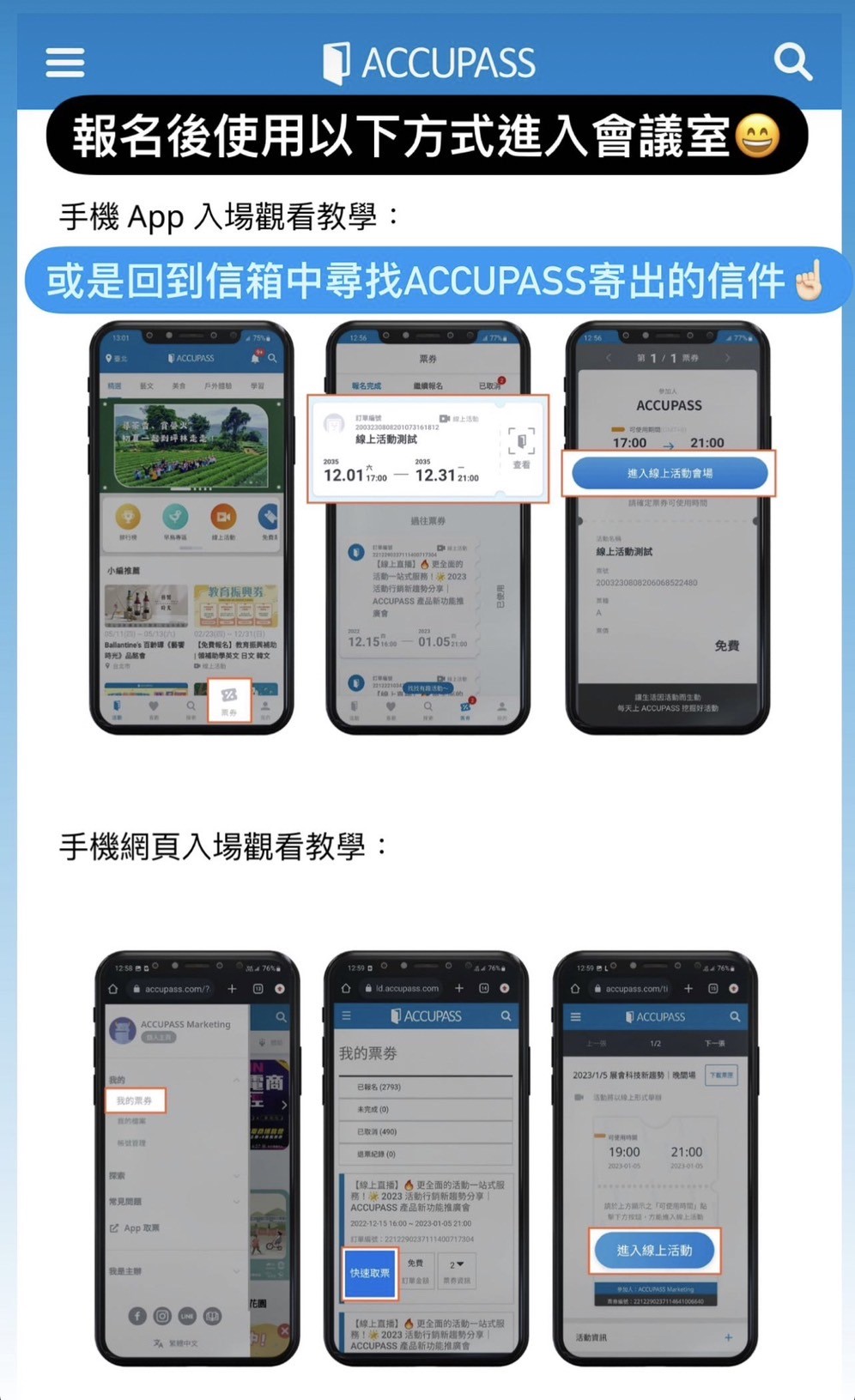 A : 報名成功後,會由Accupass寄送電子票卷確認。