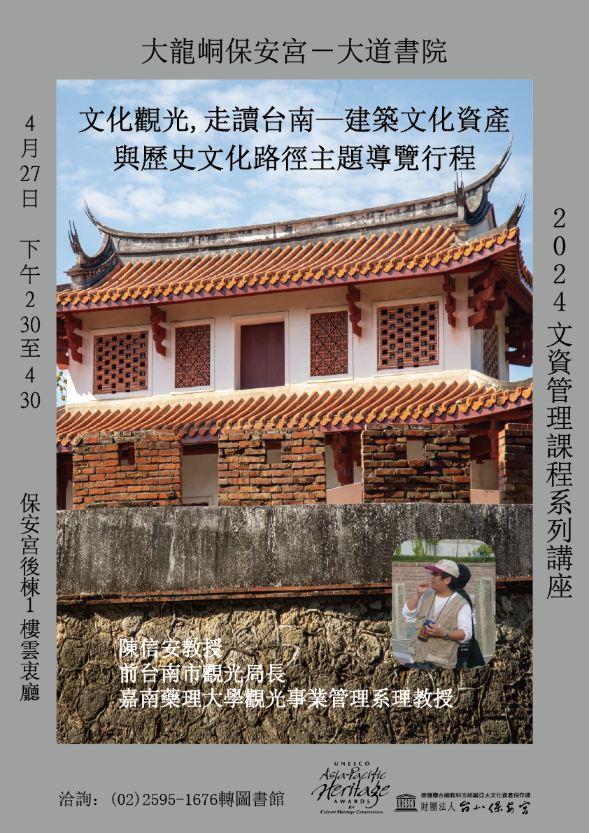 演講主題:文化觀光,走讀臺南—建築文化資產與歷史文化路徑主題導覽行程