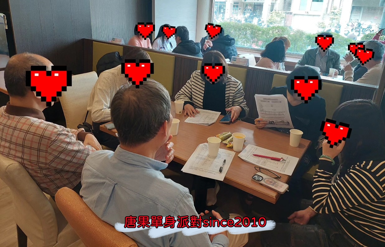 ☆簡易流程:報到→檢驗身份證→2對2(或3對3)男女入座→茶會交流→愛情心理測驗→互換連絡通訊→開心賦歸