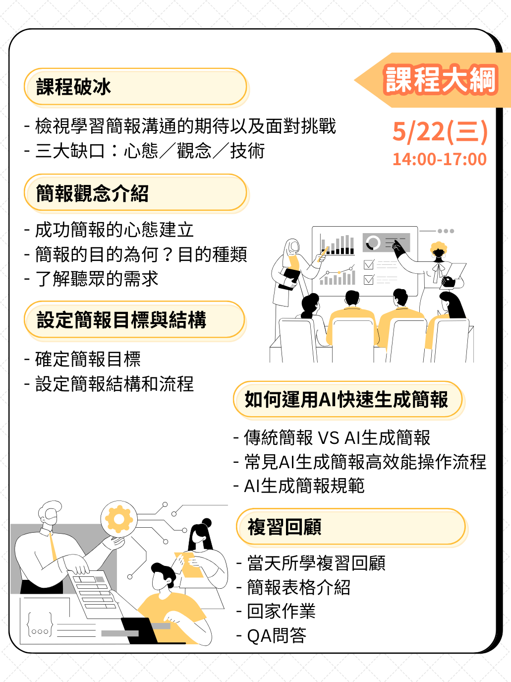 • 時間:113年5月22日(三)、5月23日(四)14:00-17:00,共6小時