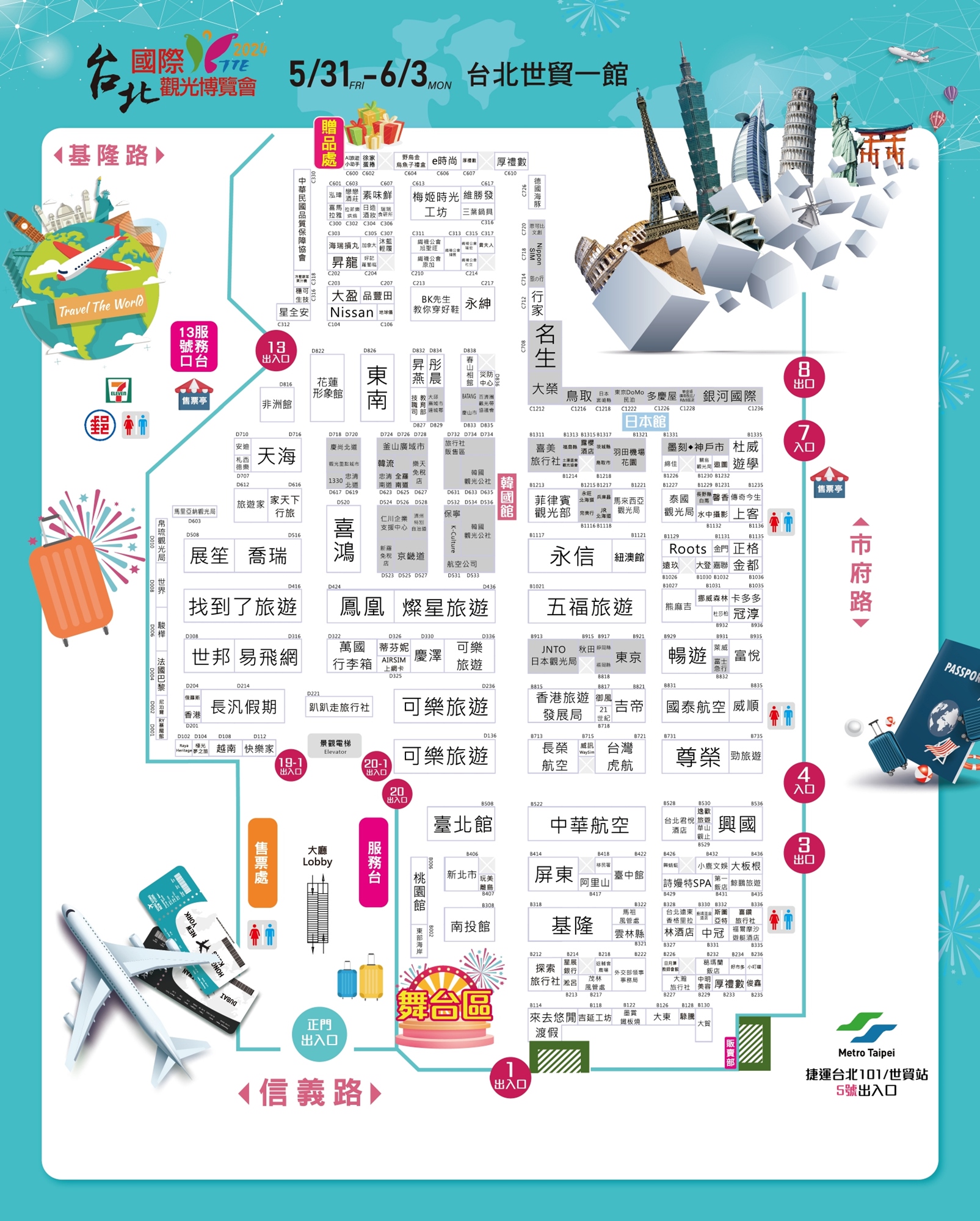 5月31至6月3日為期四天,於臺北世貿一館盛大開展。此次集結 250家海內外廠商,展位規模近800格,包含12國海外單位、4大航空公司,及中央部會與全臺15縣市政府,逾50家旅行社和國內知名飯店、國旅業者一同共襄盛舉。此次旅展規劃6大展區,包含海外旅遊區、樂遊臺灣區、日本主題區、航空公司區、中央/縣市政府區及伴手禮區,另外為體現展覽多元性,於展場舉辦「深度旅遊說明會」、「大會舞臺活動」、「JNTO日本琉球國 祭太鼓表演」、「趣味互動挑戰賽」、「達人旅遊講座」等精彩活動。