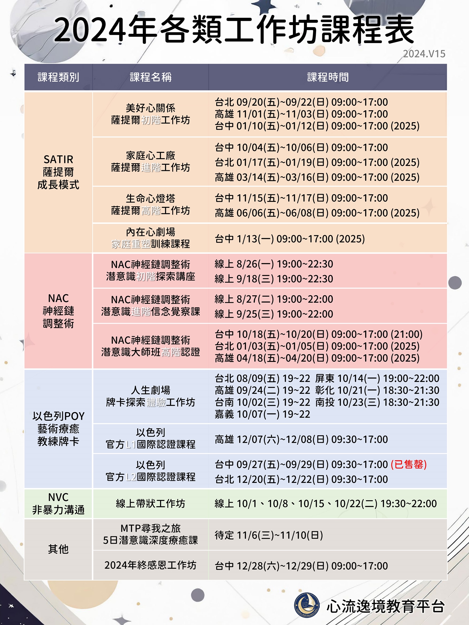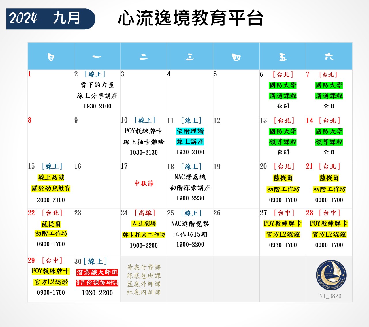 ❤心流逸境教育平台-九月份課程表❤